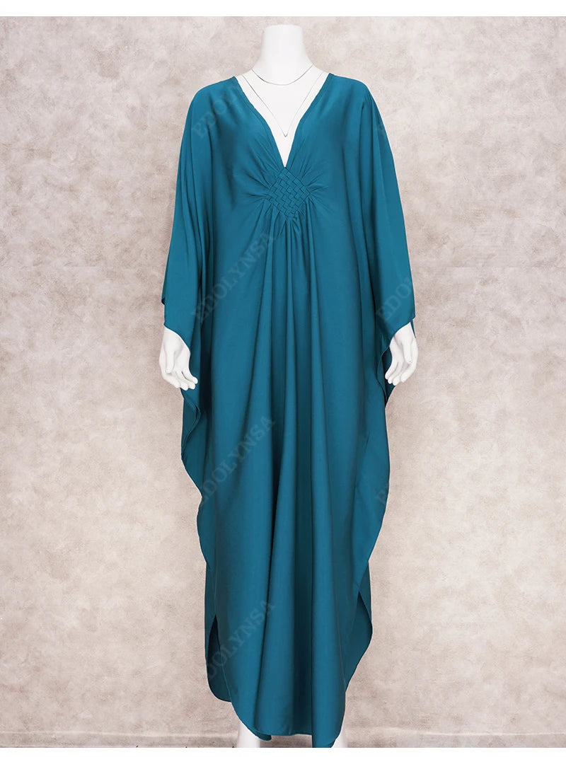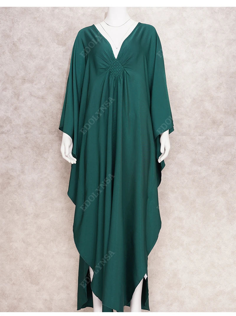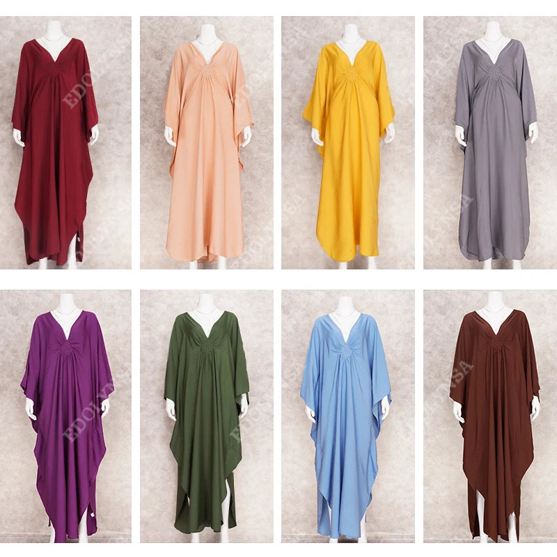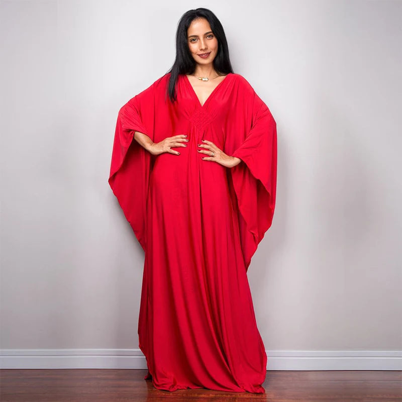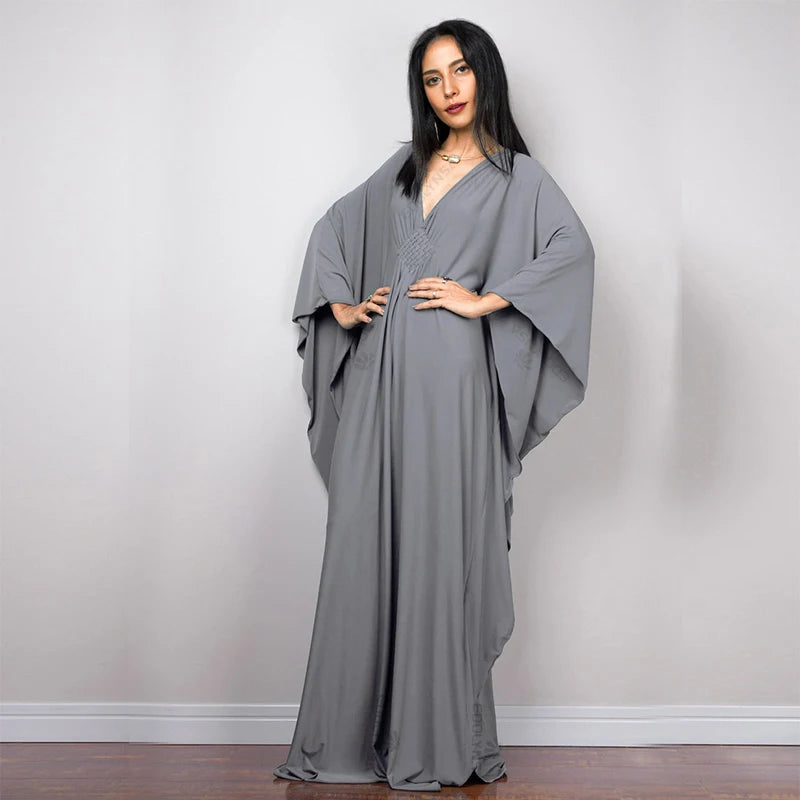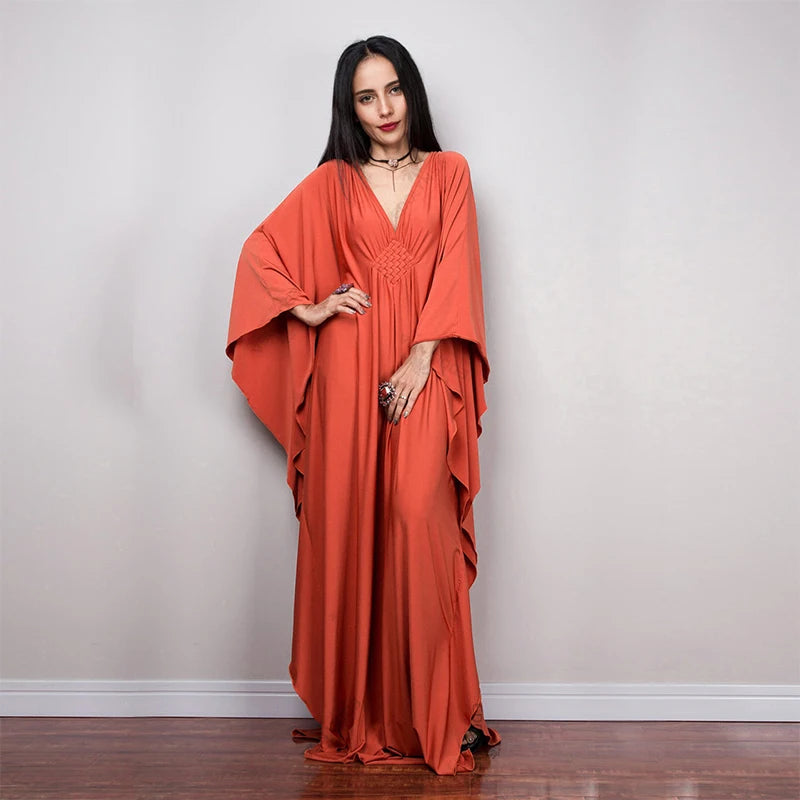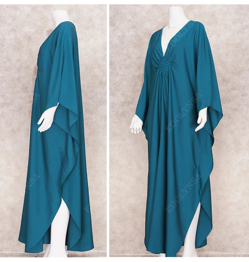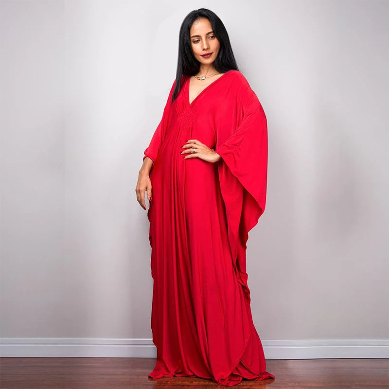 Step into summer with the Multicolor V‑Neck Batwing Sleeve Kaftan Maxi Dress (Q1306)—a vibrant and comfortable choice for beach outings, resort vacations, or casual lounging. Designed to flatter and flow, this dress offers both style and ease for plus-size women seeking elegance without compromise.