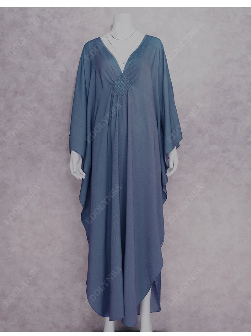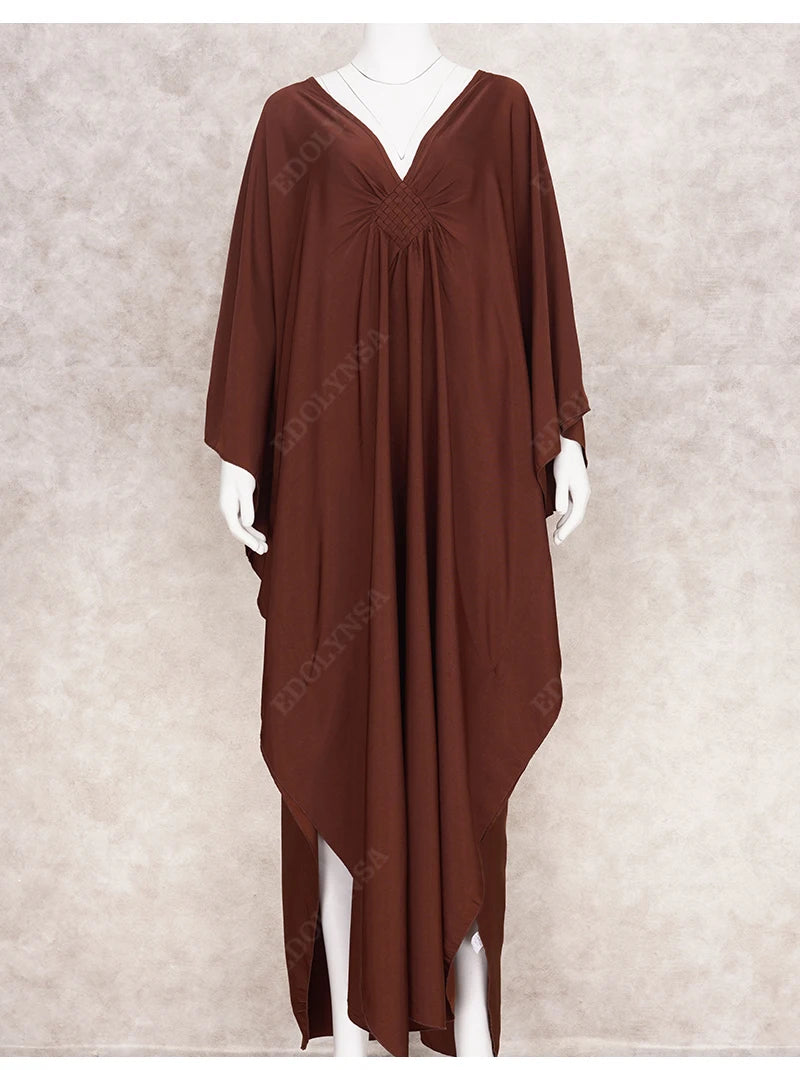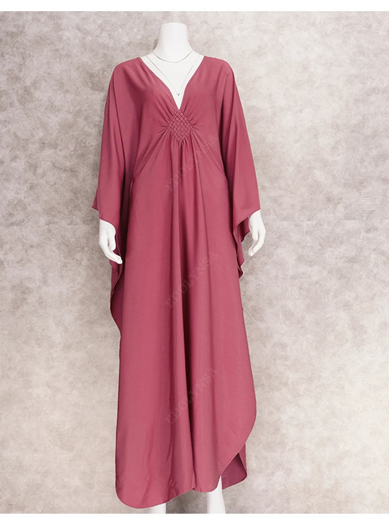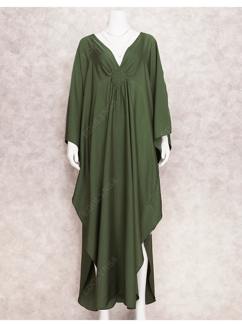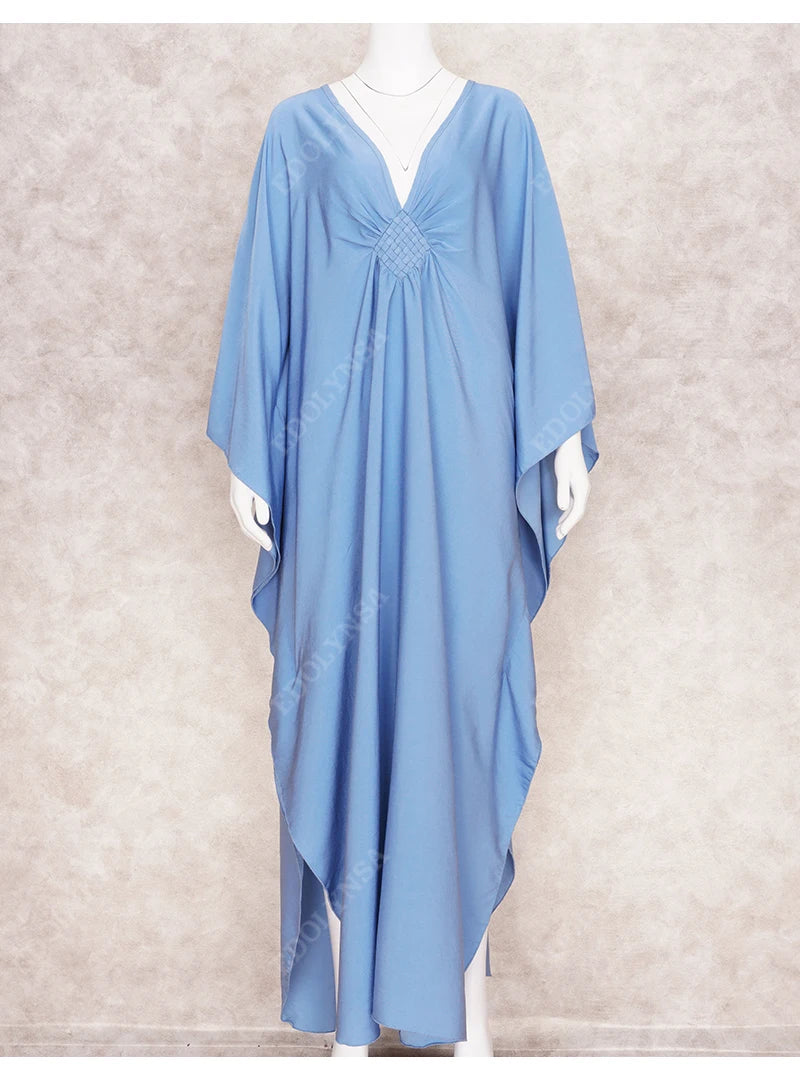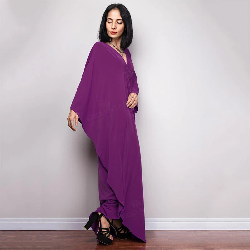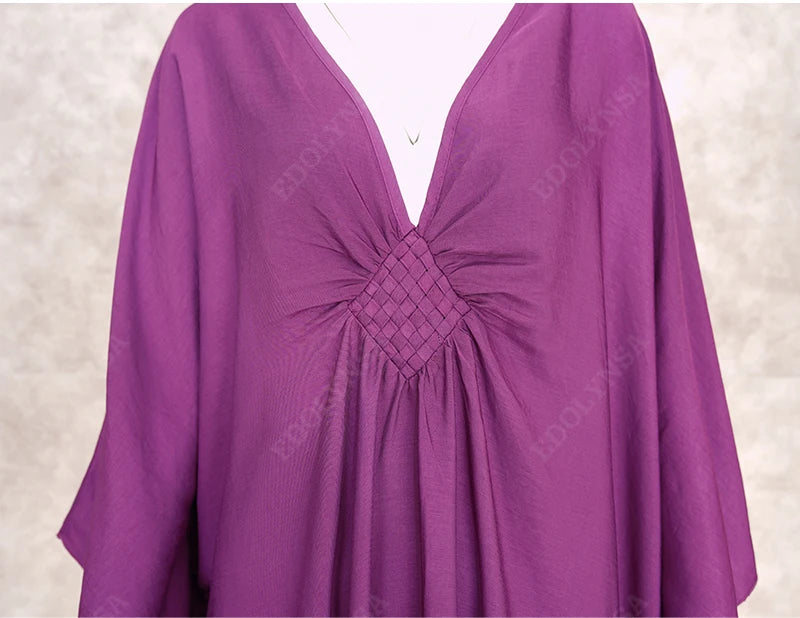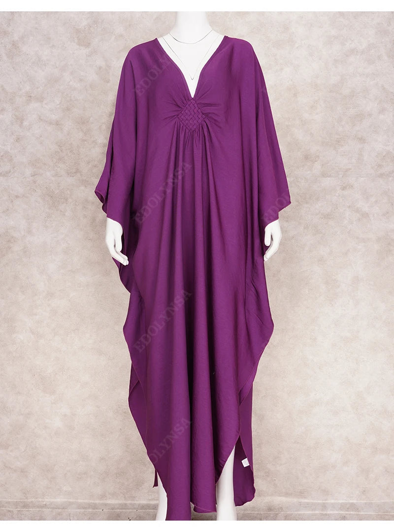 Step into summer with the Multicolor V‑Neck Batwing Sleeve Kaftan Maxi Dress (Q1306)—a vibrant and comfortable choice for beach outings, resort vacations, or casual lounging. Designed to flatter and flow, this dress offers both style and ease for plus-size women seeking elegance without compromise.