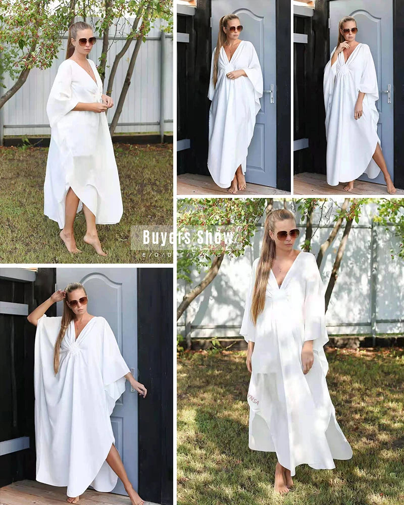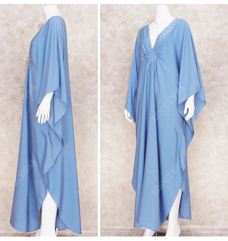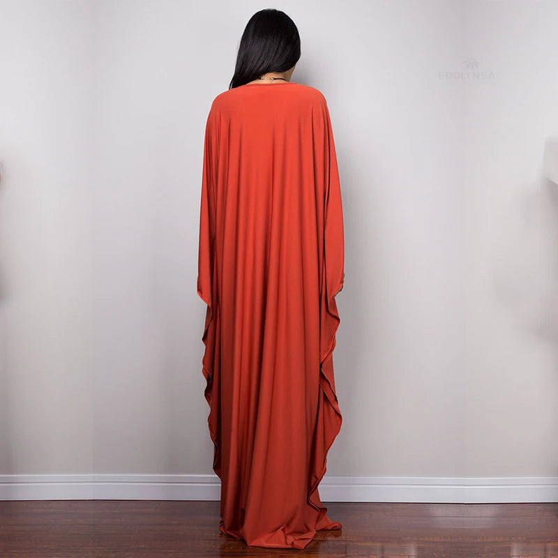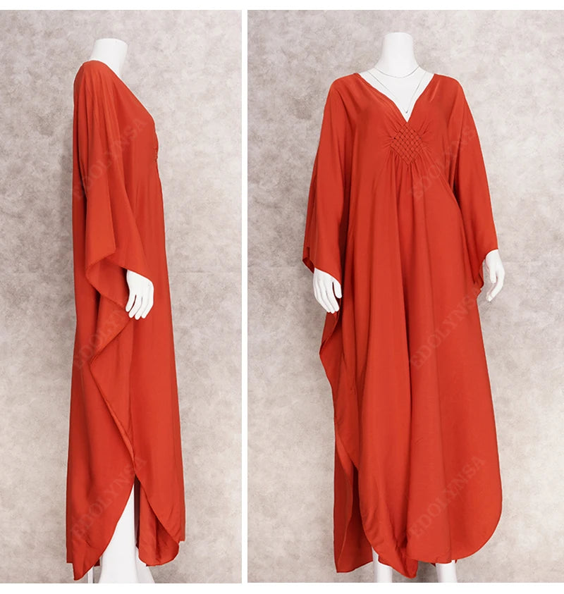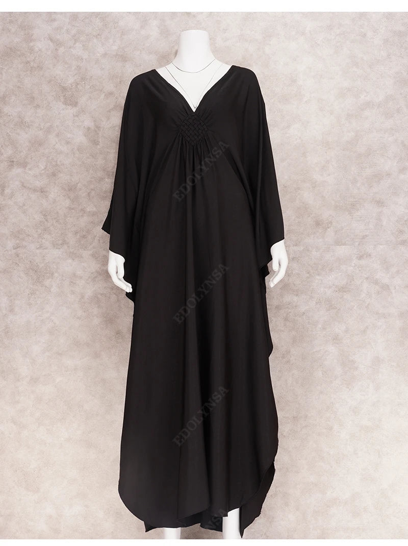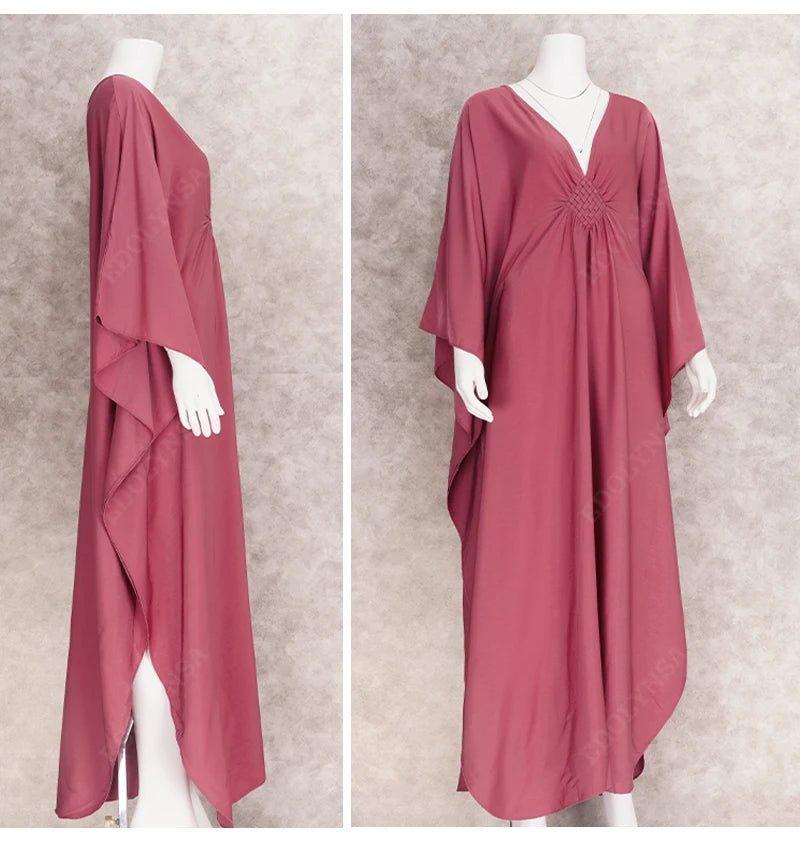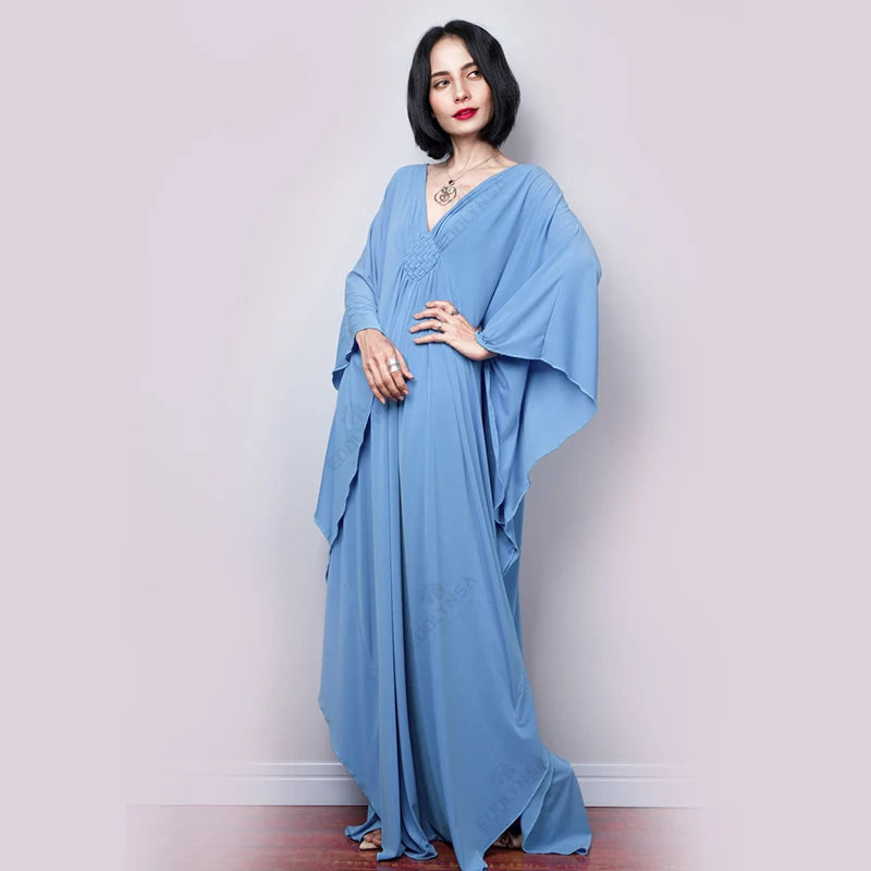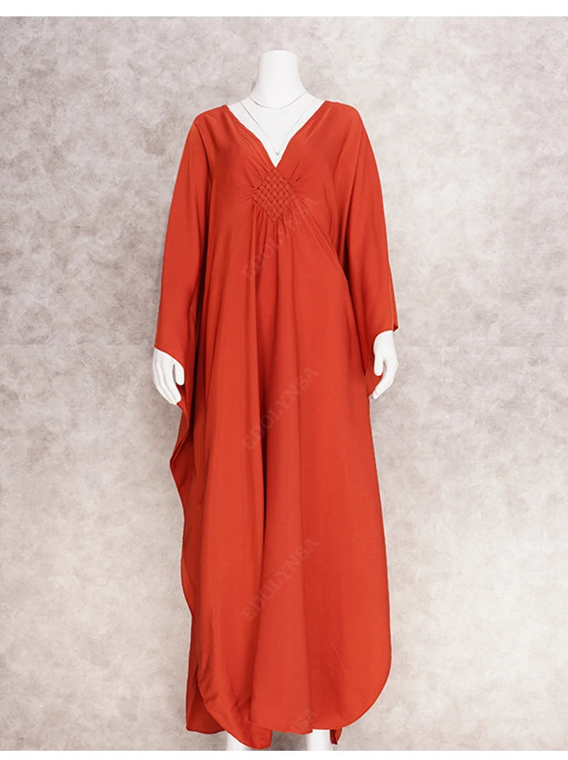 Step into summer with the Multicolor V‑Neck Batwing Sleeve Kaftan Maxi Dress (Q1306)—a vibrant and comfortable choice for beach outings, resort vacations, or casual lounging. Designed to flatter and flow, this dress offers both style and ease for plus-size women seeking elegance without compromise.