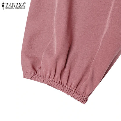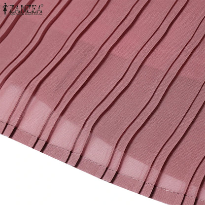 Celebrate elegance and modesty with the ZANZEA Pleated Long Sleeve Abaya Dress, a timeless piece designed for the modern Muslim woman. Crafted from breathable polyester, this floor-length dress features delicate pleats and a flattering A-line silhouette, making it ideal for both everyday wear and special occasions like Eid.