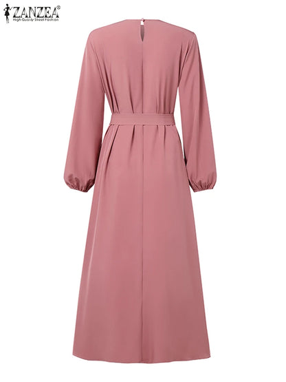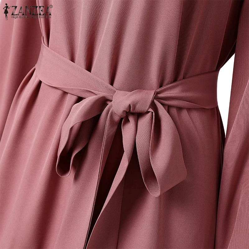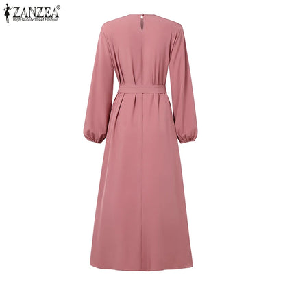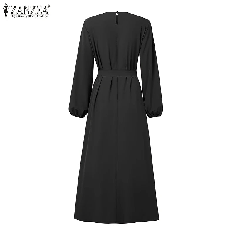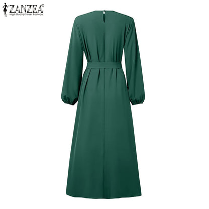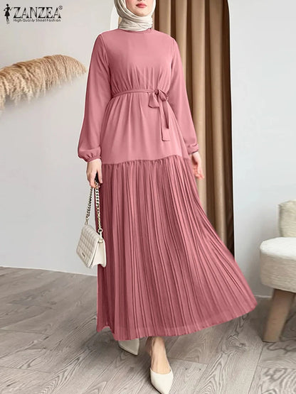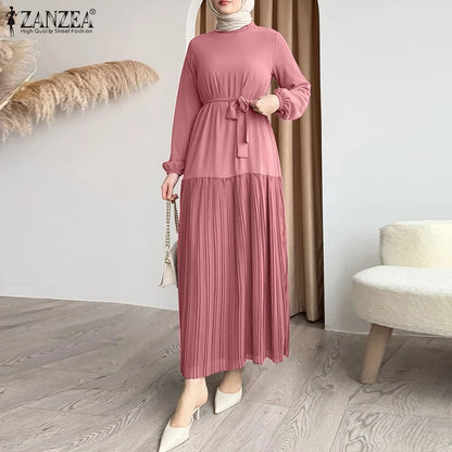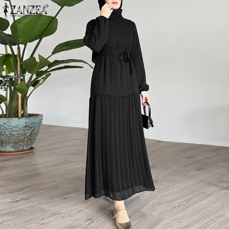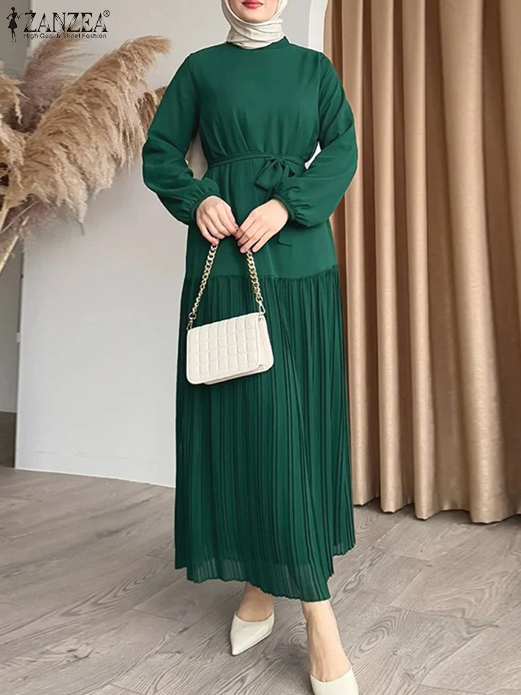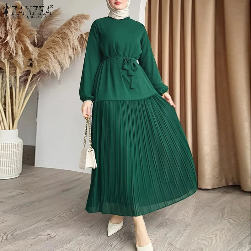 ZANZEA abaya dress, pleated long sleeve abaya, Muslim women's dress, Eid Mubarak dress, Islamic clothing for women, modest fashion, A-line abaya dress