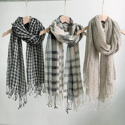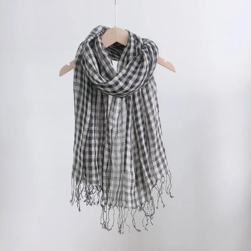 Elevate your modest fashion with the Linen Plaid Hijab & Turban Scarf, a versatile accessory designed for comfort and style across all seasons. Crafted from breathable linen, this scarf features a timeless plaid pattern, making it suitable for both casual and formal occasions.